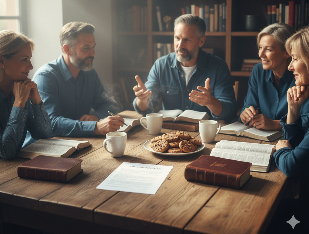 Alle zwei Wochen treffen wir uns im Hauskreis. Dabei diskutieren wir einen Text aus der Bibel und tauschen miteinander aus.