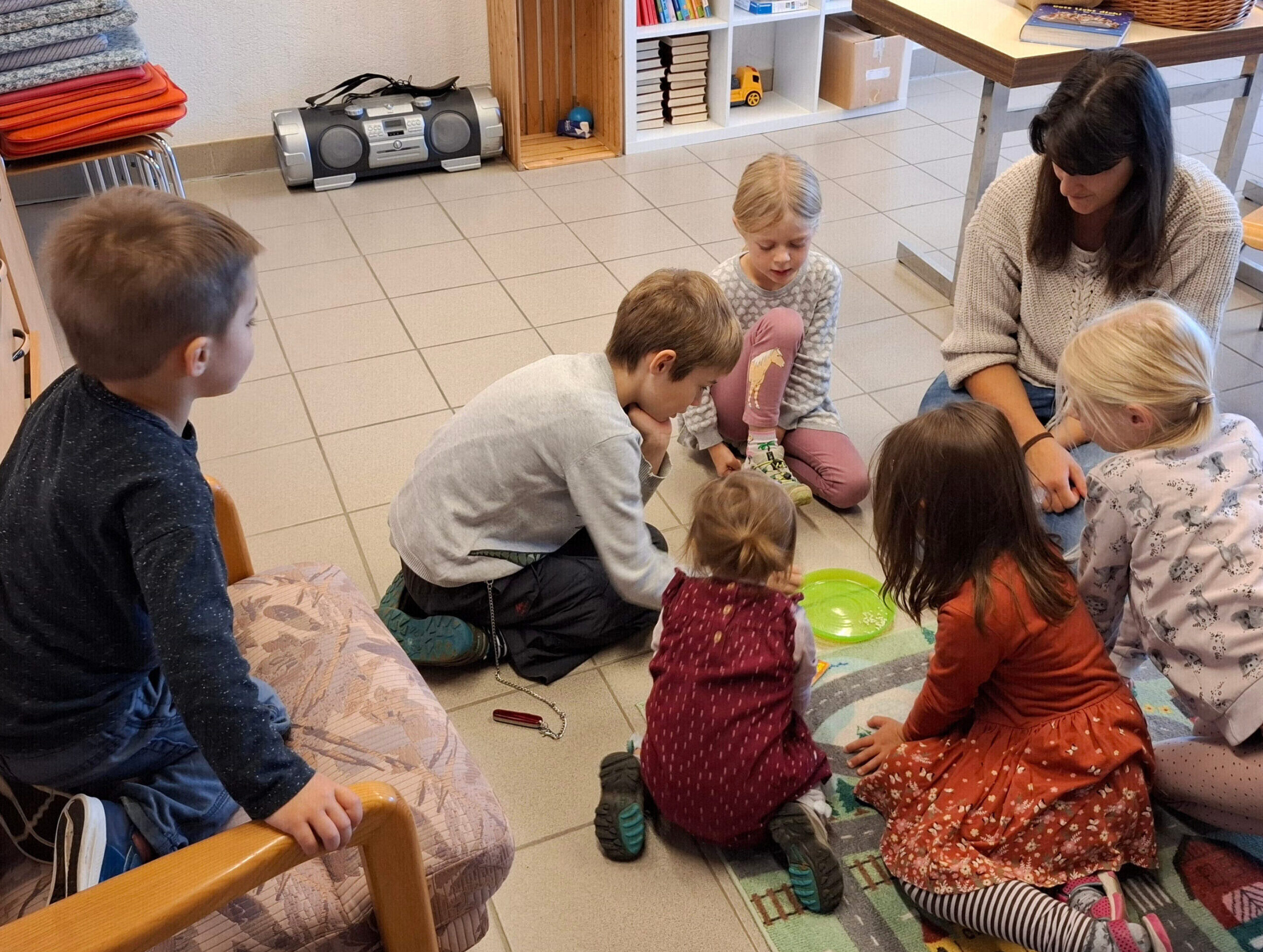 Zusammen hören wir eine spannende Geschichte aus der Bibel, singen, basteln oder spielen noch.